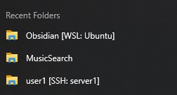 After opening a folder for the first time, I left-click VS Code on my taskbar, drag up, and select what I’m looking for from the Recent Folders.